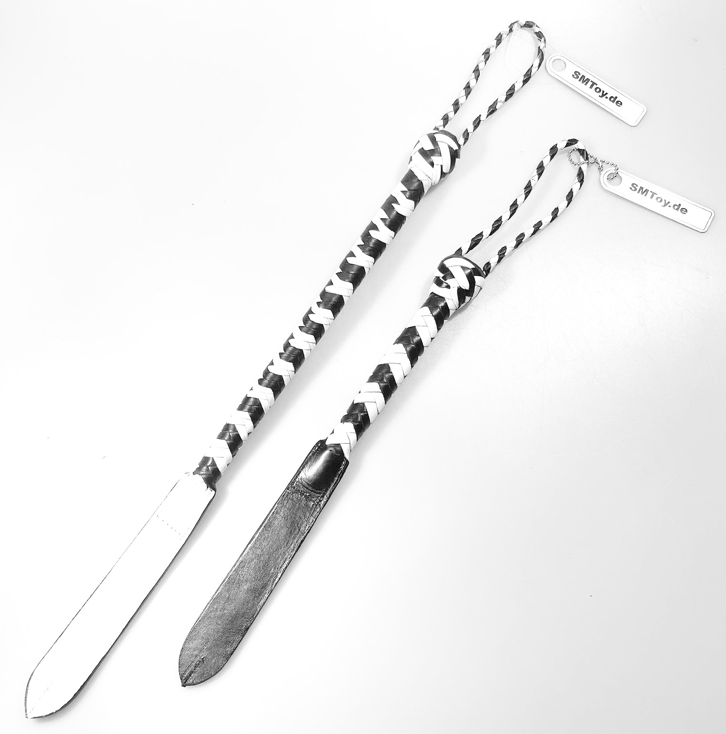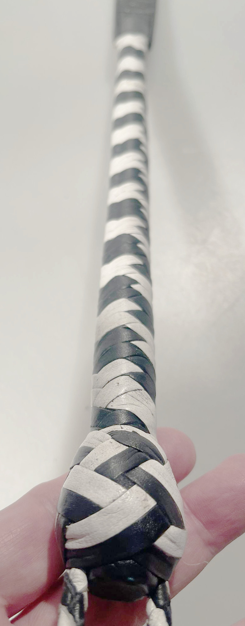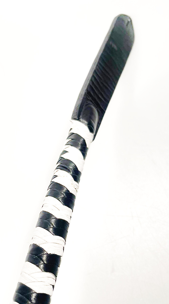 Kurzer Kantschu - Hochwertige Lederpeitsche mit Klatsche 47cm Black-White