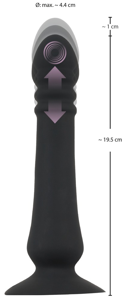 Gesamtlänge 19,5 - 20,5 cm, Einführlänge 18 cm, Ø max. 4,4 cm. Silikon, PU, ABS.