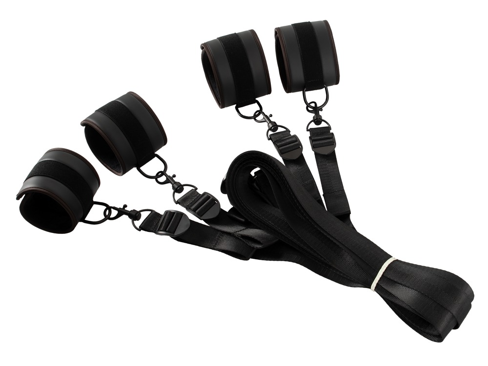 Mit diesem Bettfessel-Set lässt sich jedes Bett in einen profimäßigen Bondage-Playground verwandeln.