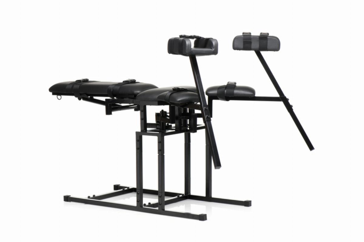 Entworfen, um bis zu 150 kg Gewicht zu tragen, verfügt dieser Stuhl über verstellbare Teile für deine Beine, mit denen du die Höhe und Breite anpassen kannst, sowie eine Rückenlehne, die deinen Partner vom Sitzen in die horizontale Liegeposition bringen kann.