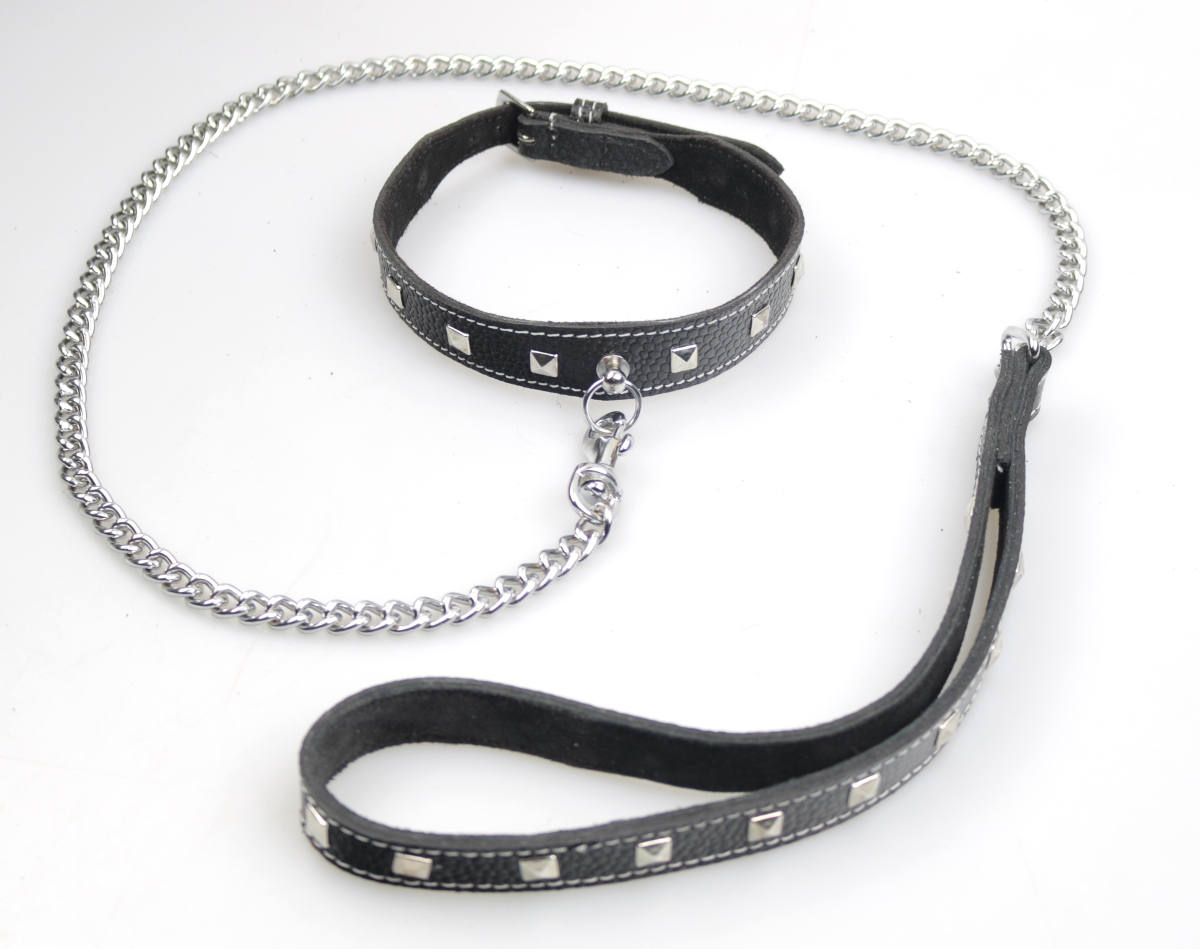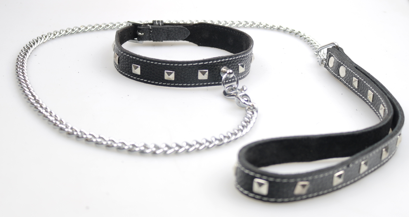 Führkette mit grosser Schlaufe, Karabiner und Nieten