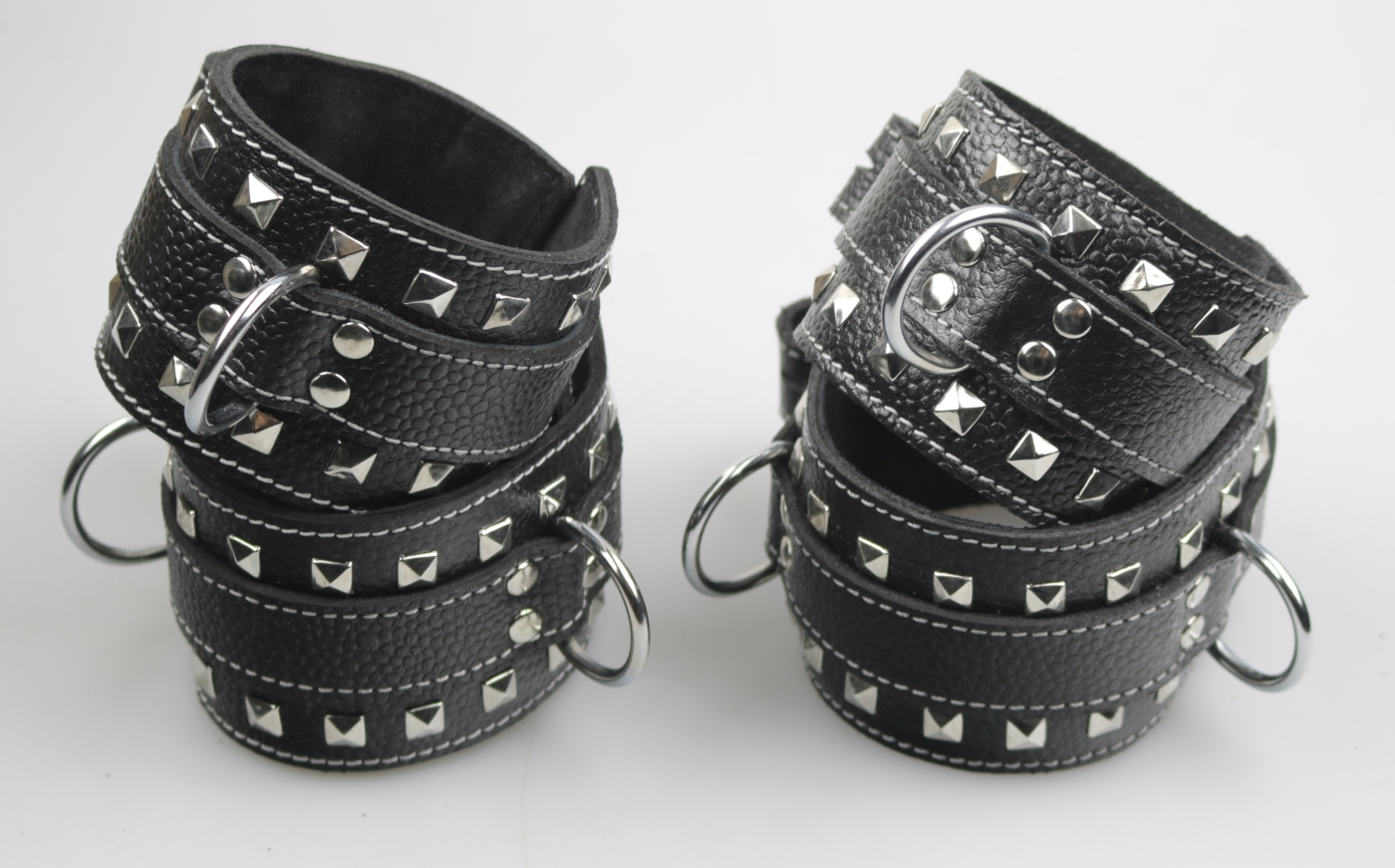 Hand- und Fussfessel mit Nieten und D-Ringen