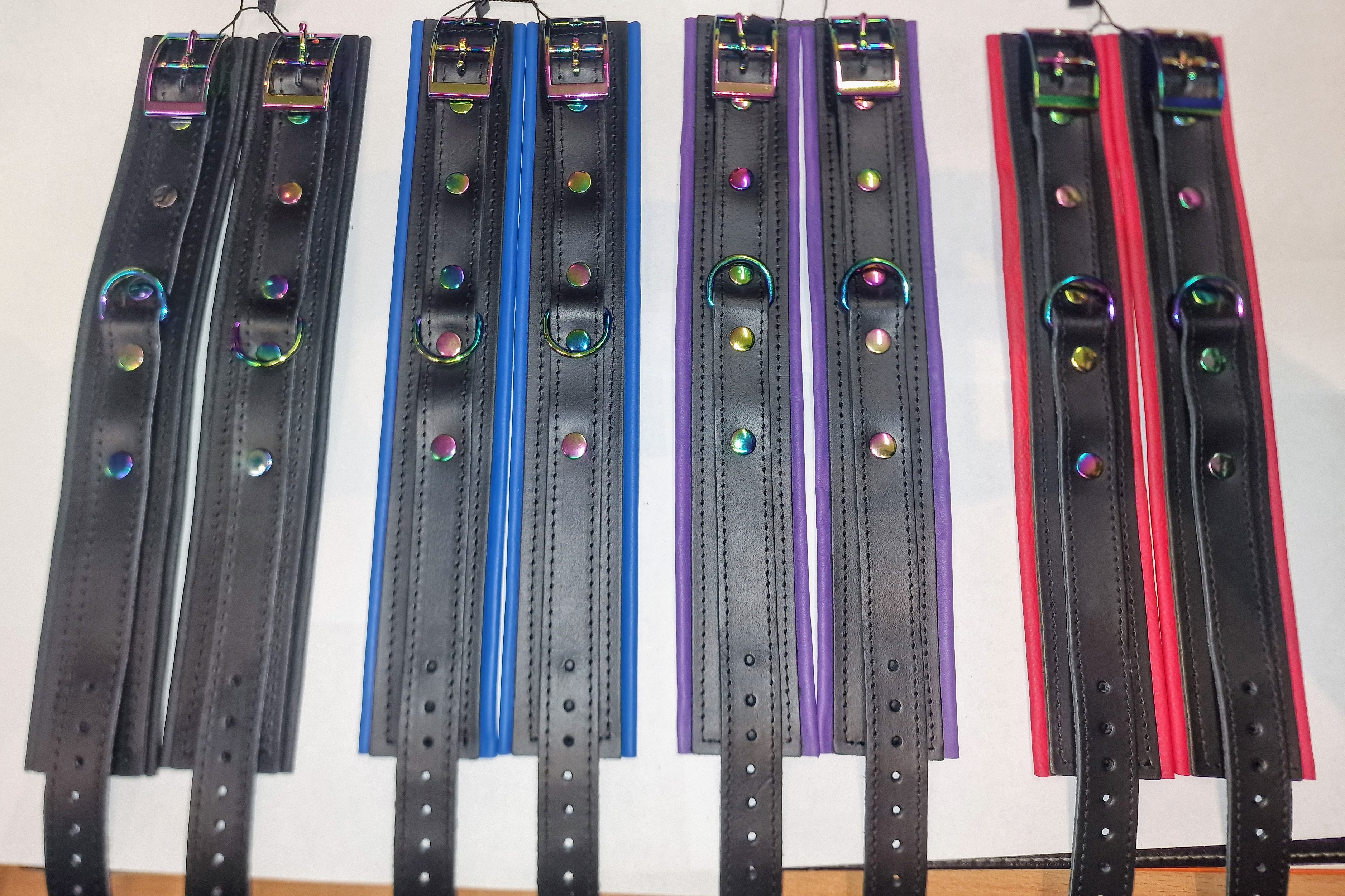 High-Quality Fußfesseln – Regenbogen/Holo-Metallelemente