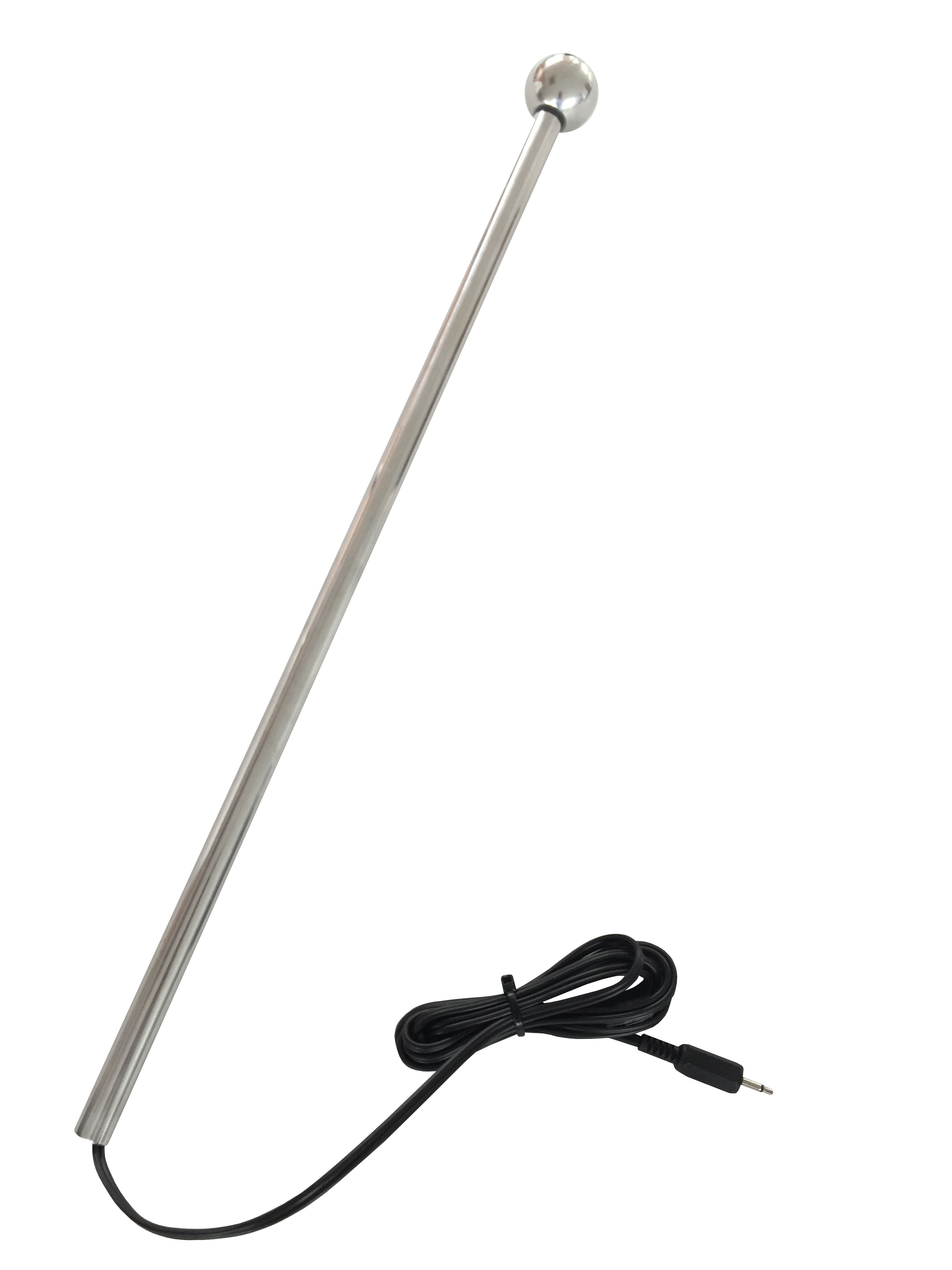 Elektro Stab aus glänzend poliertem Aluminium mit ca. 30 mm Kugel.