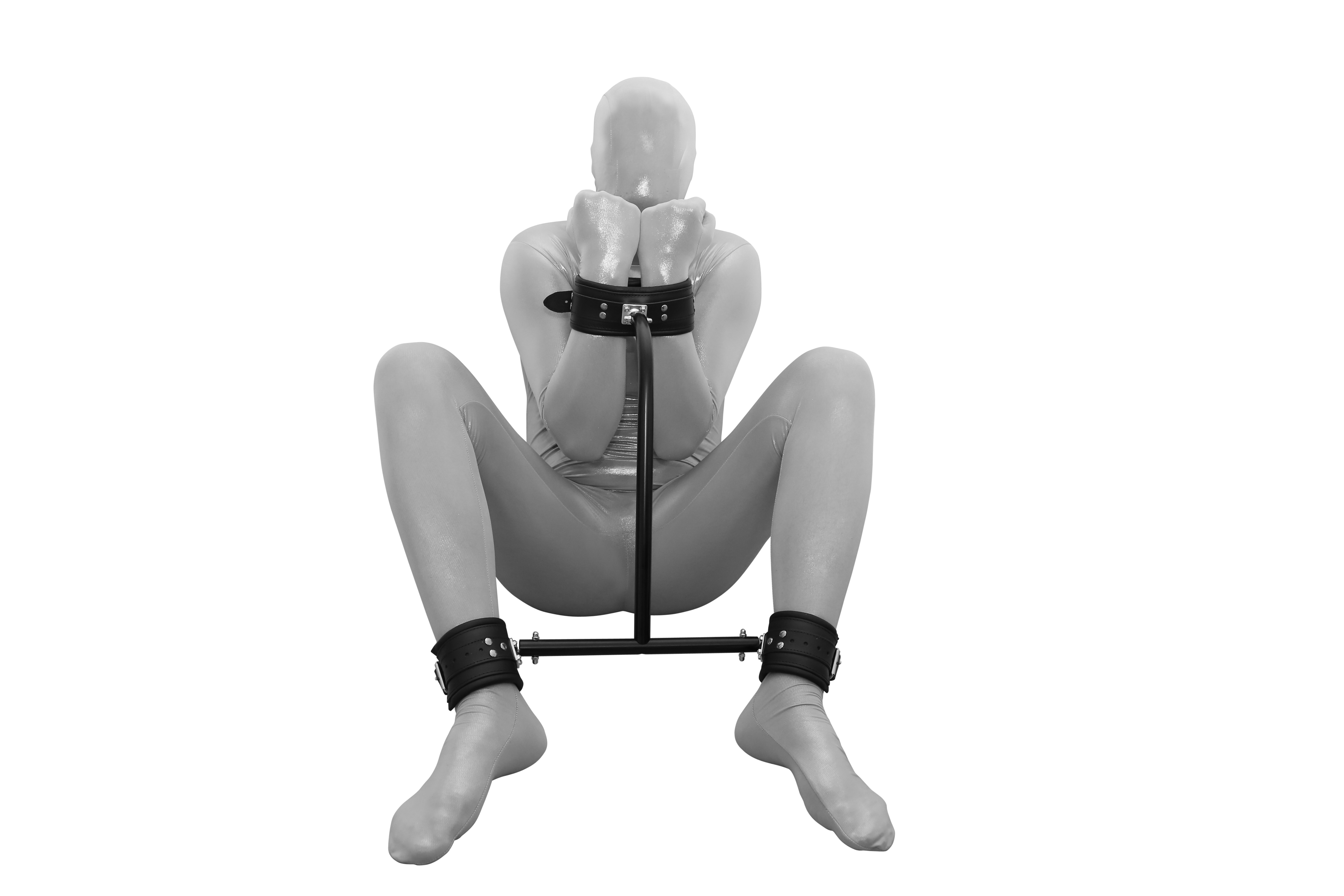 Pranger mit drehbaren Handfesseln und Halsfessel (aus weich gepolstertem Nappaleder).