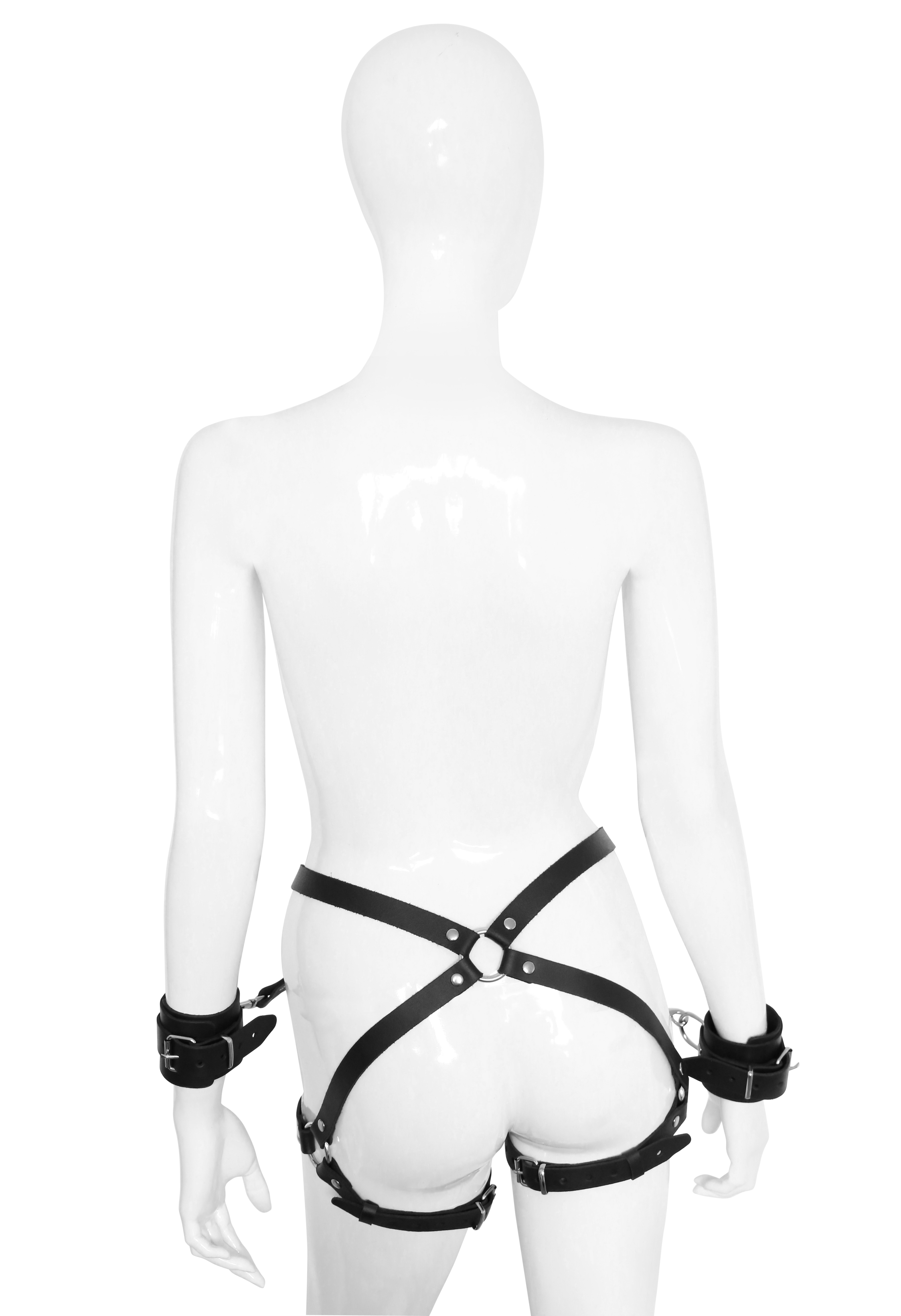 Harness aus Leder mehrfach verstellbar mit abnehmbaren Hadfesseln