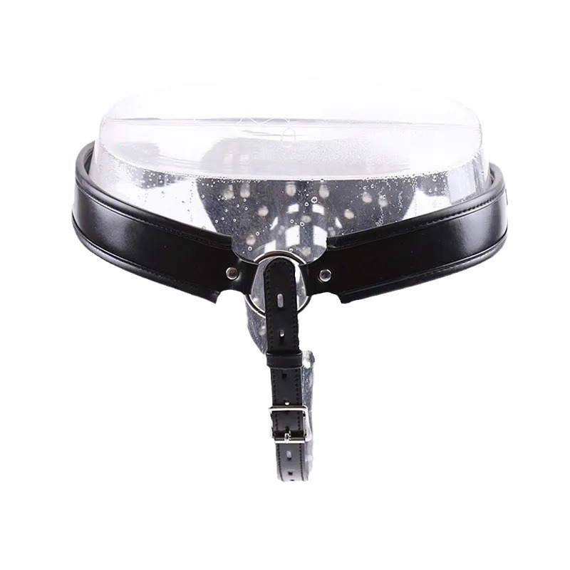 Dieses Chastity-Harness setzt auf eine stabile Frontplatte mit perforierter Cage-Struktur und betontem Kontrollmoment: Ein zentrales Vorhängeschloss fixiert die Front, während der Bund stufenlos anpassbar bleibt. Die Metallnieten und Ringe verleihen dem Accessoire einen authentischen, dominanten Look – ideal für BDSM-Sessions, Rollenspiel und Foto-Sets.