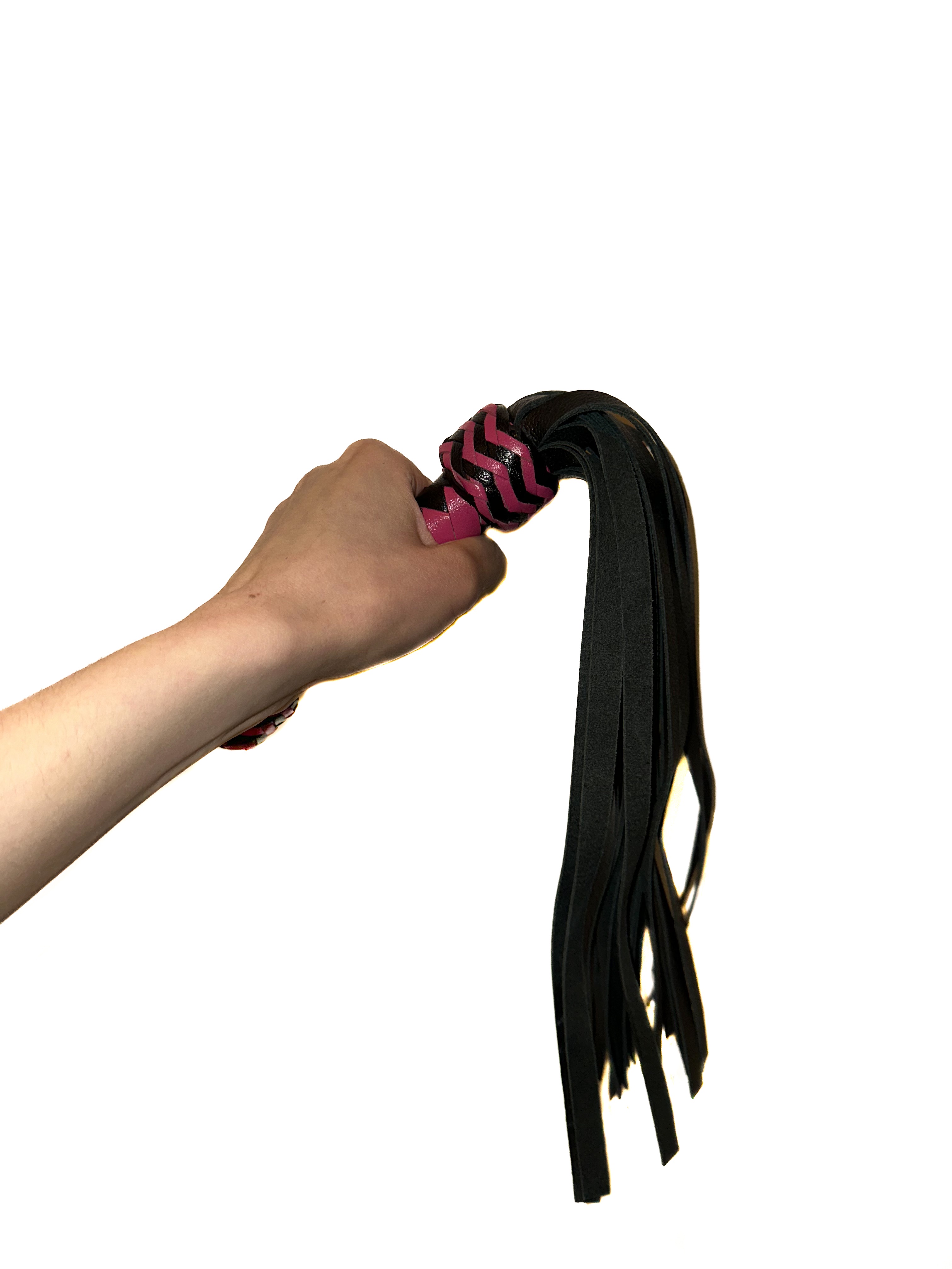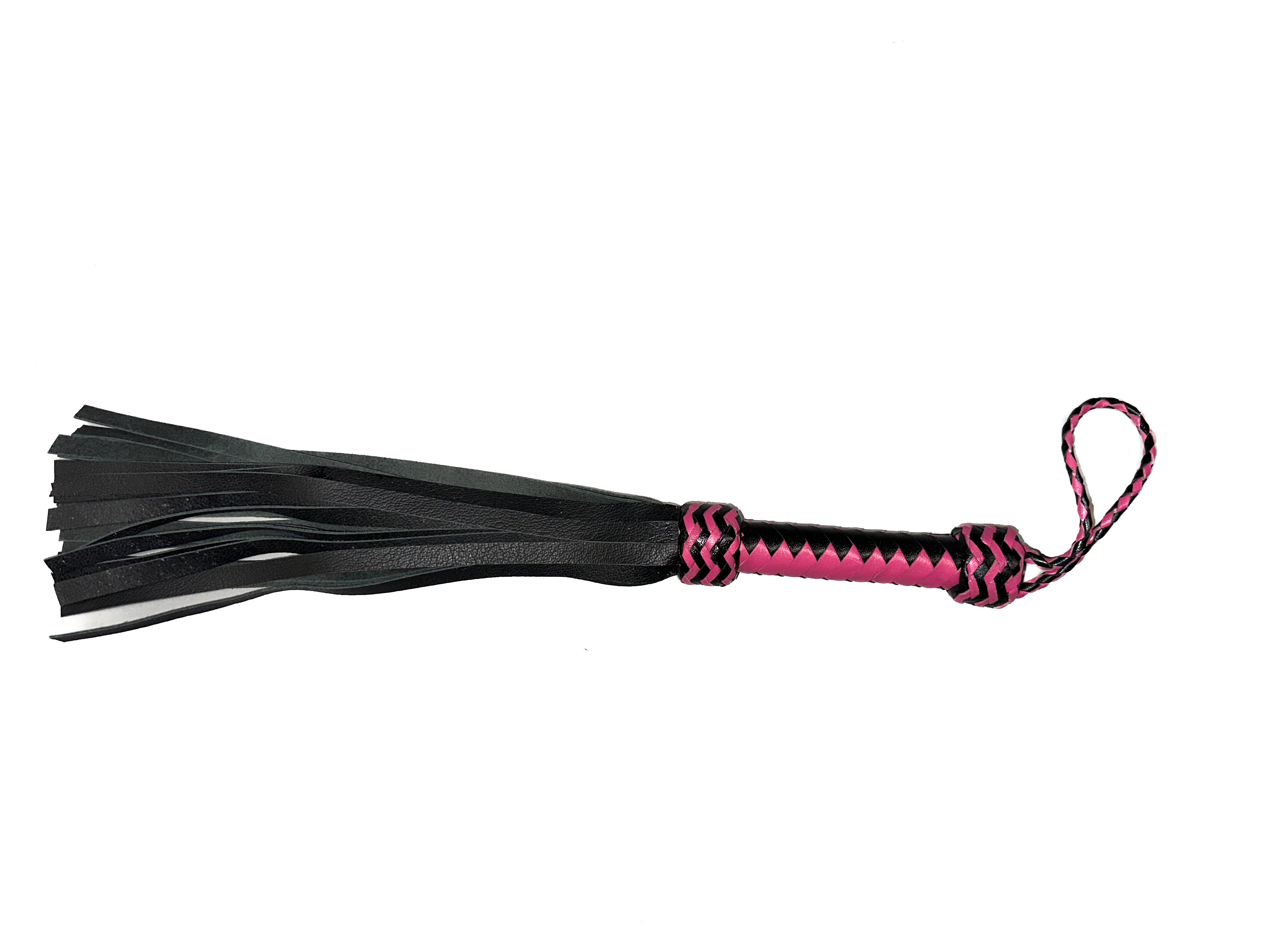 Kleiner weicher Flogger aus Rindsleder in schwarz-pink