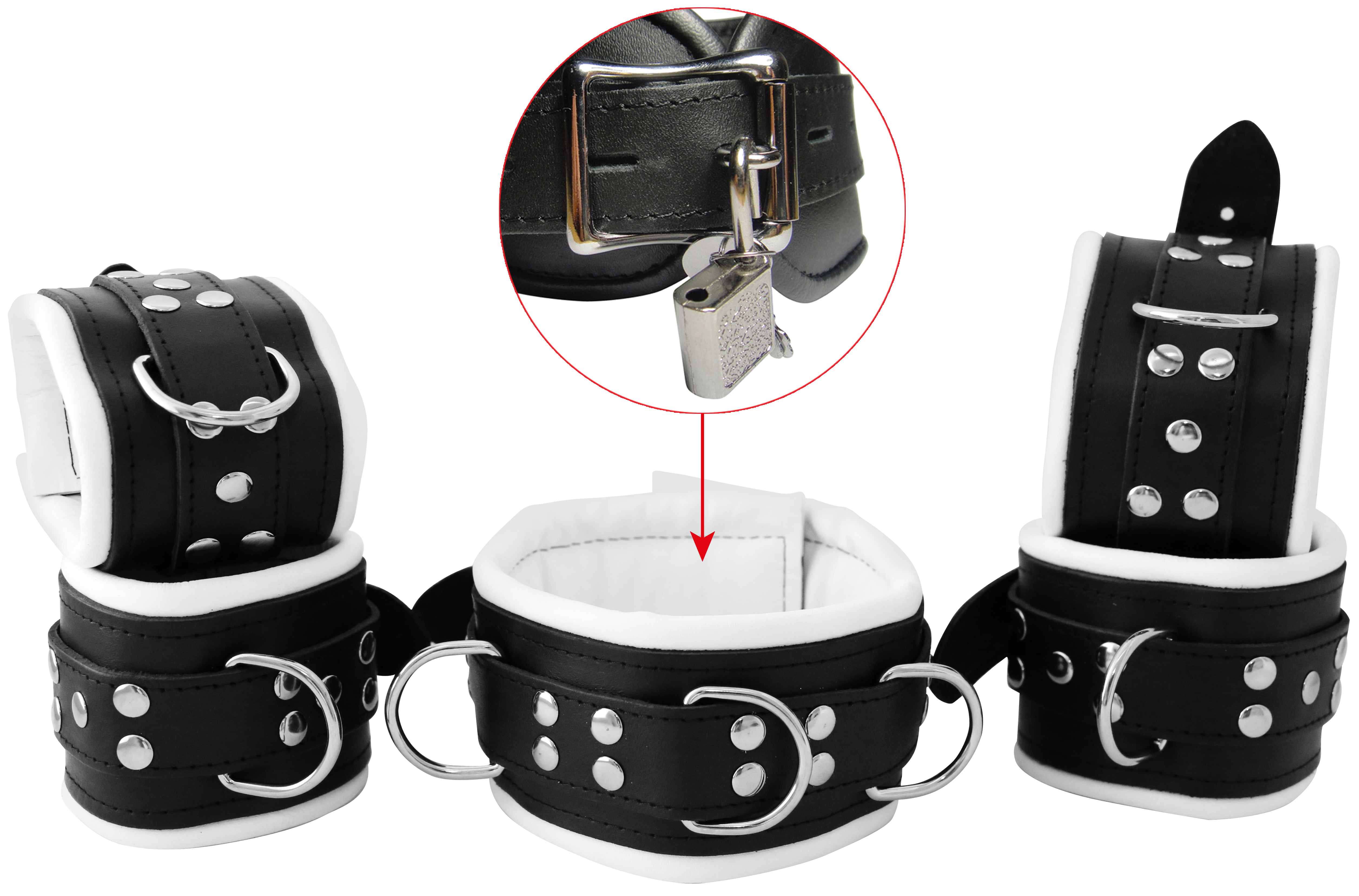 Leder Fesselset ca. 8 cm breit gepolstert abschließbar.