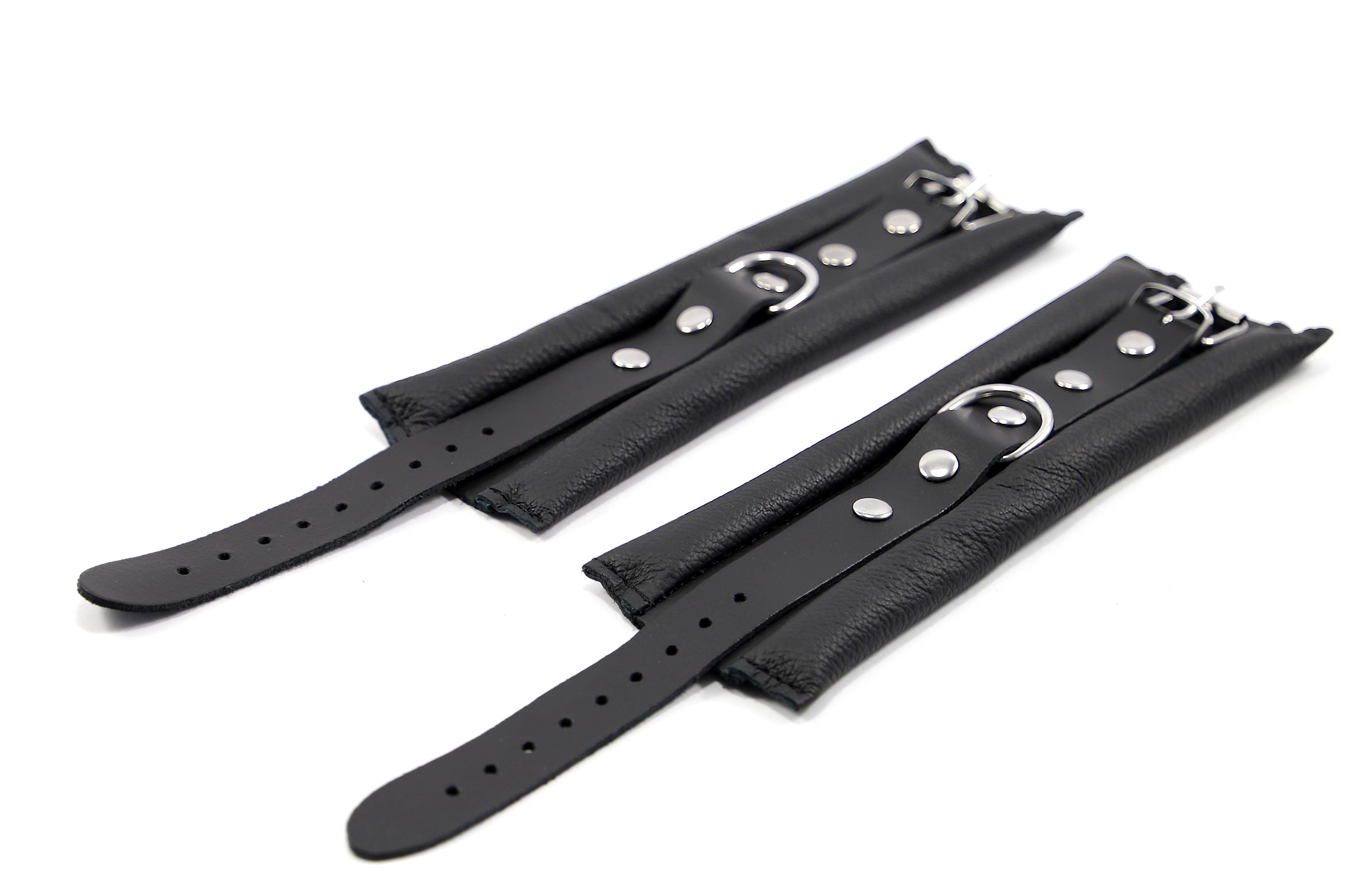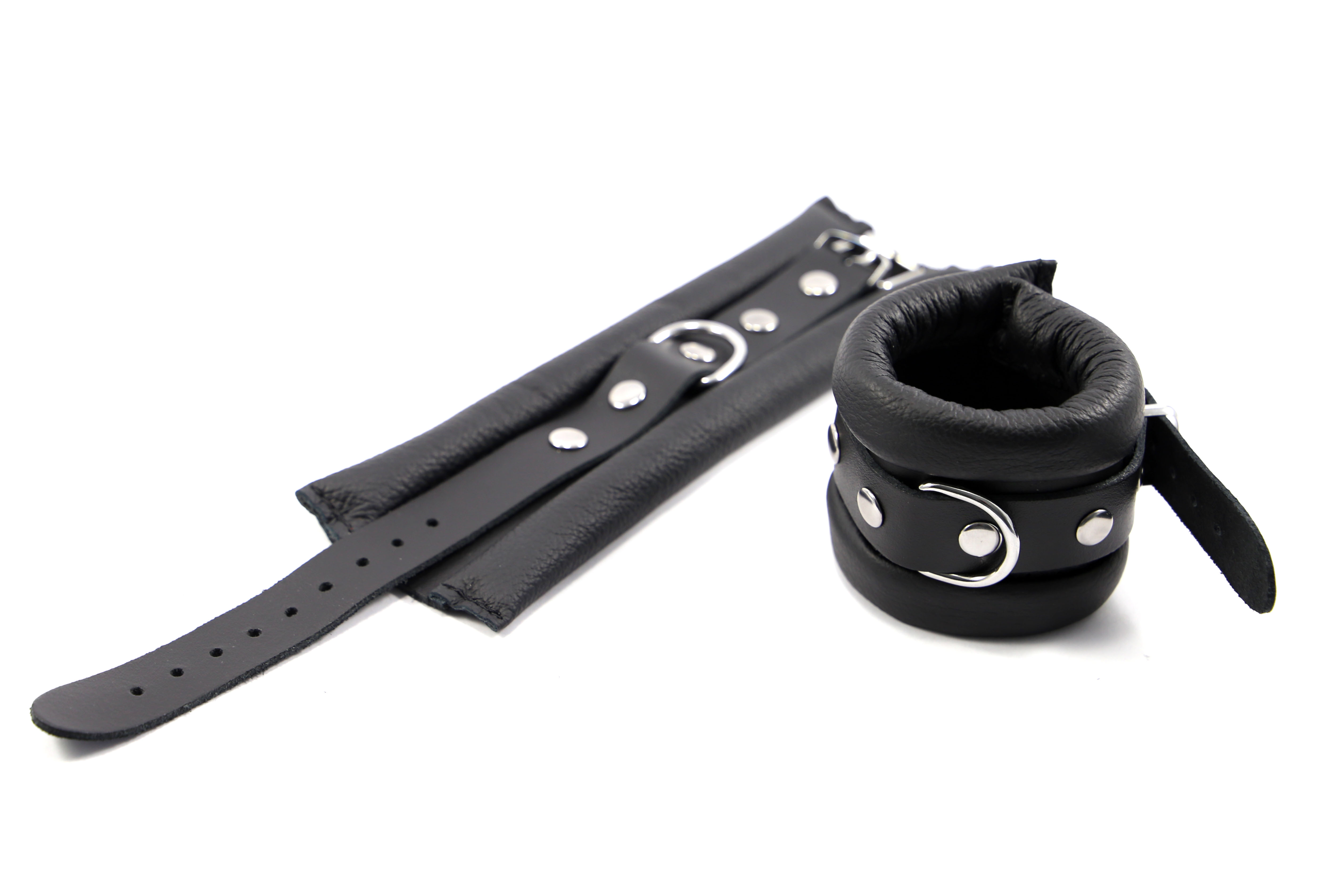 Leder Fesselset schwarz mit großen D-Ringen S-M