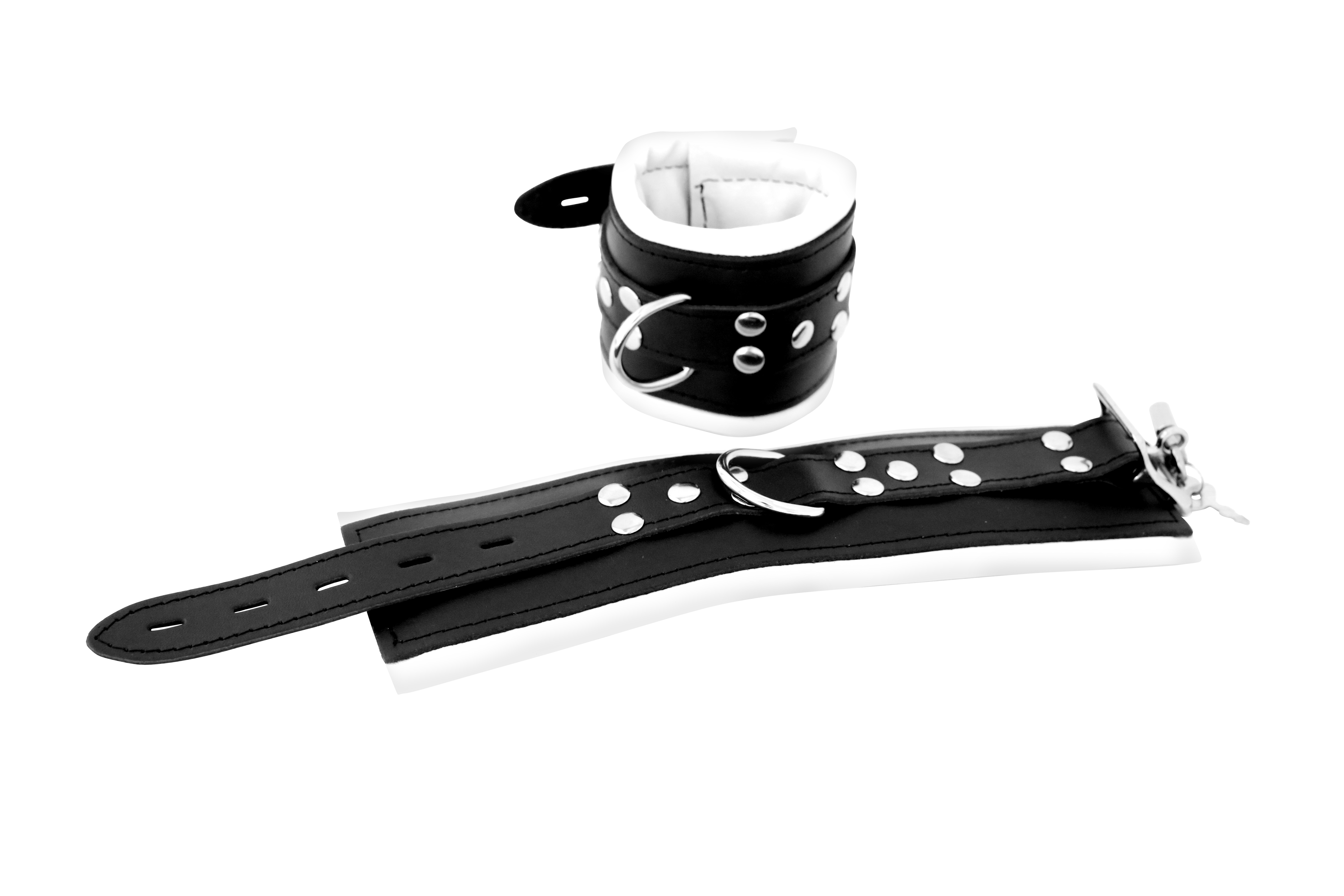 Leder Handfessel weiß ca. 8 cm breit gepolstert abschließbar.