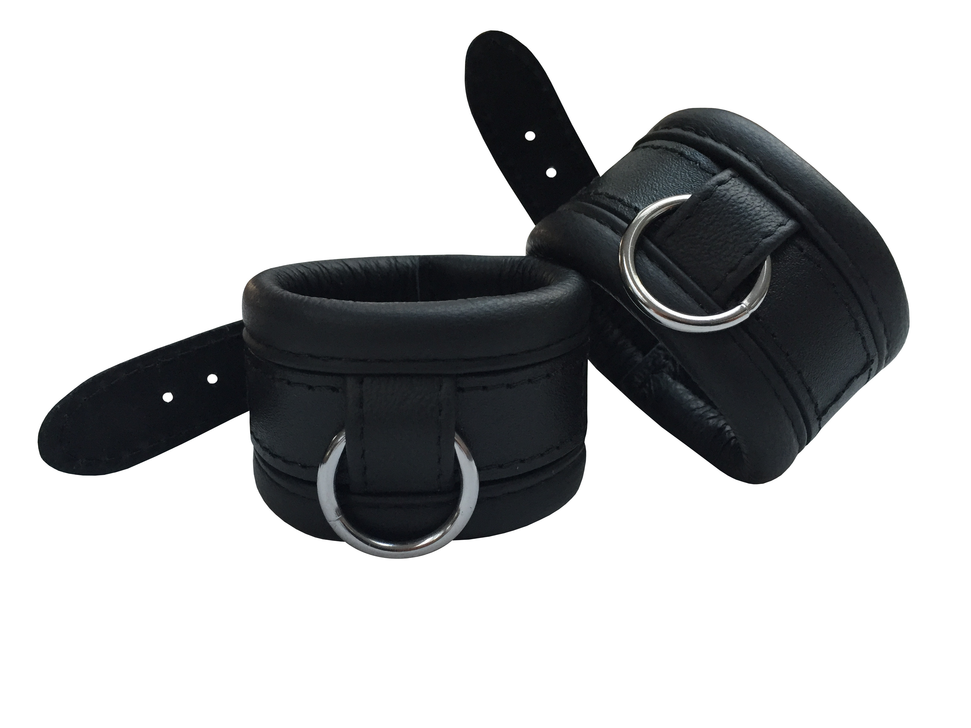 Leder Fesselset Schwarz mit drehbaren Edelstahlringen