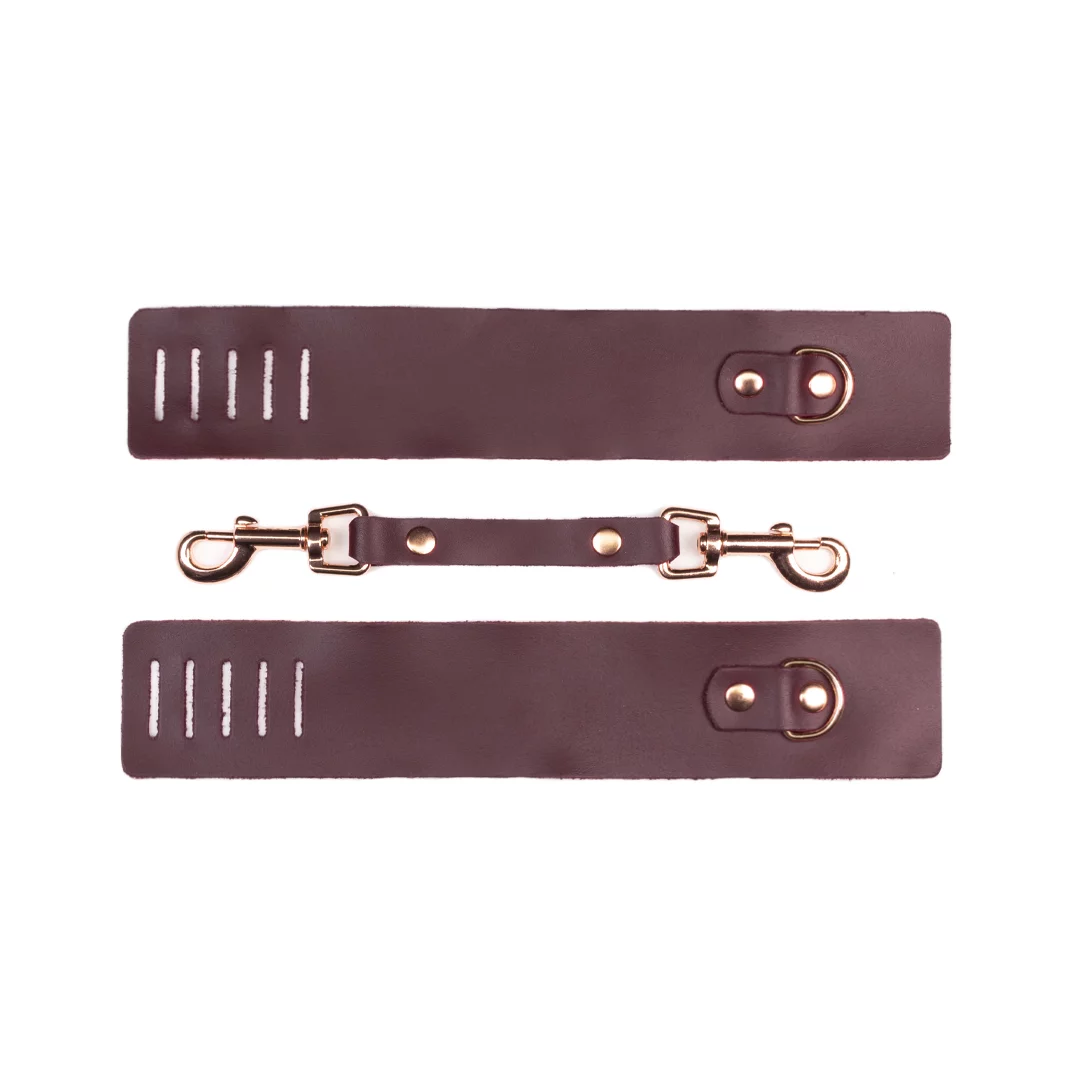 Produktinformationen "Lederhandfesseln Burgundy / Roségold"