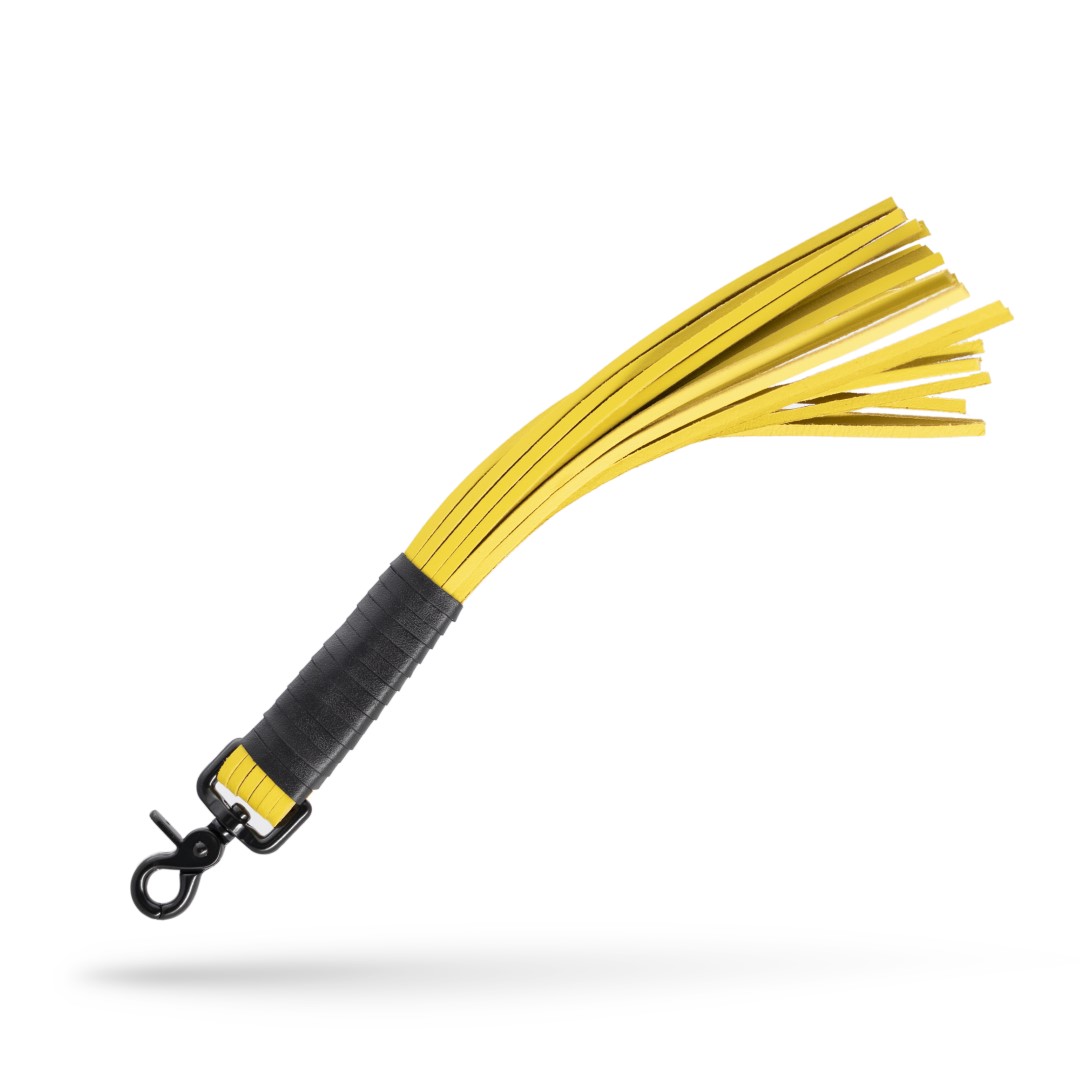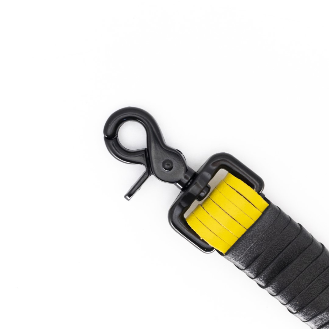 Lederpeitsche mit Karabiner Schwarz/Gelb