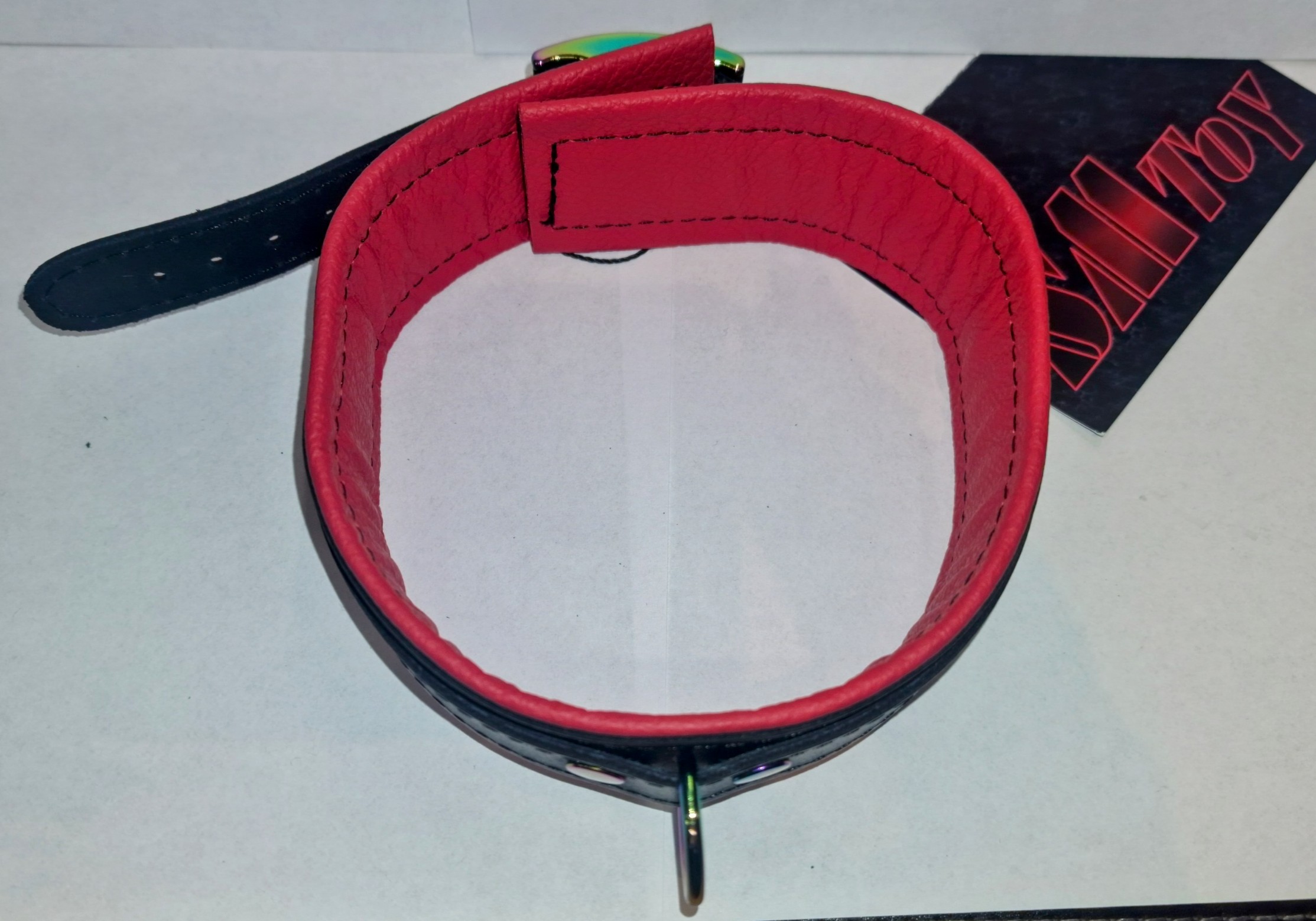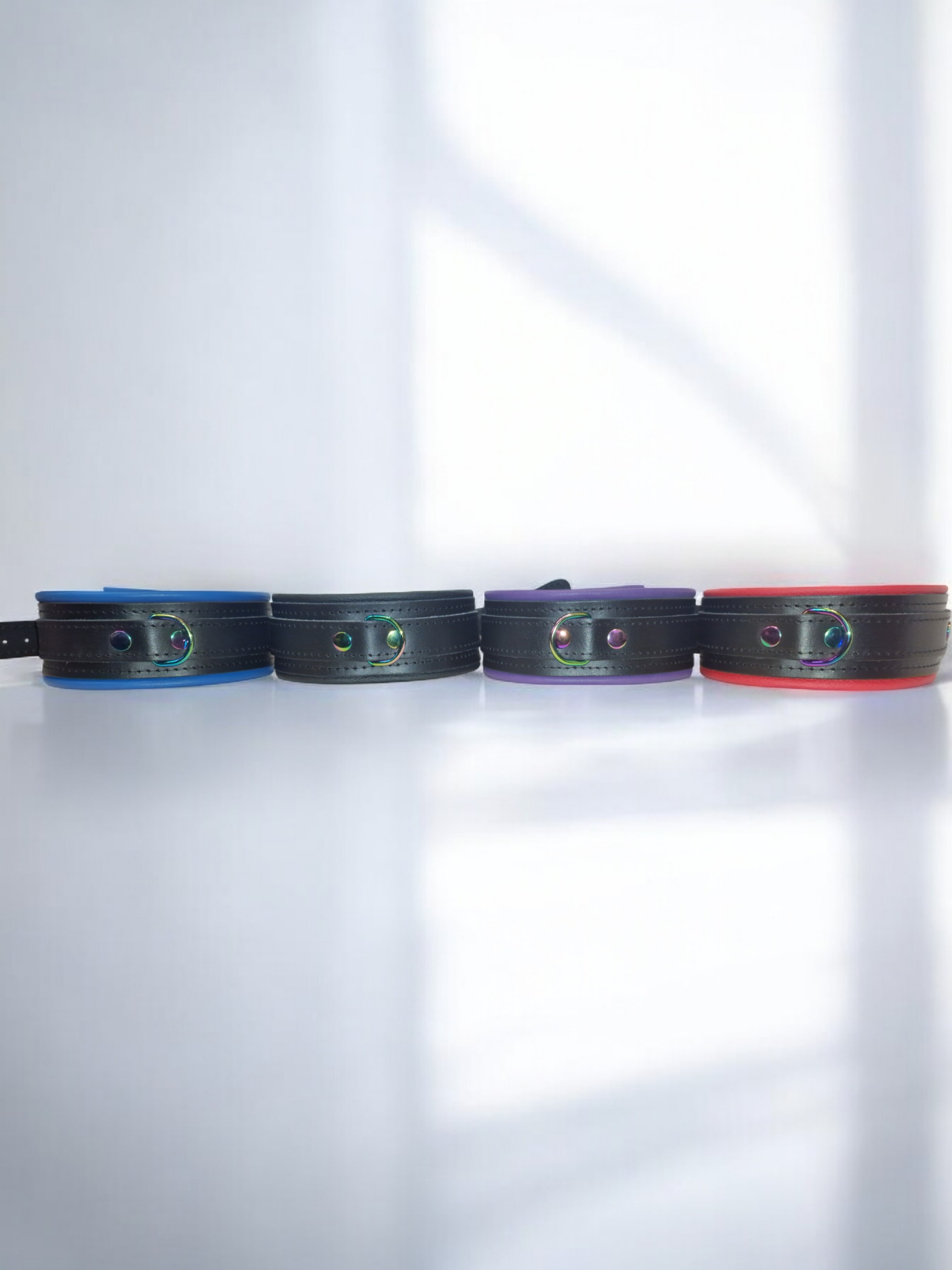 Die faszinierenden Regenbogen-/Holo-Metallelemente machen diese Halsfessel zu einem echten Blickfang. Wählen Sie Ihre Lieblingsfarbe aus einer edlen Palette: Schwarz, Lila, Rot oder Blau – für genau den Look, der zu Ihnen passt.
