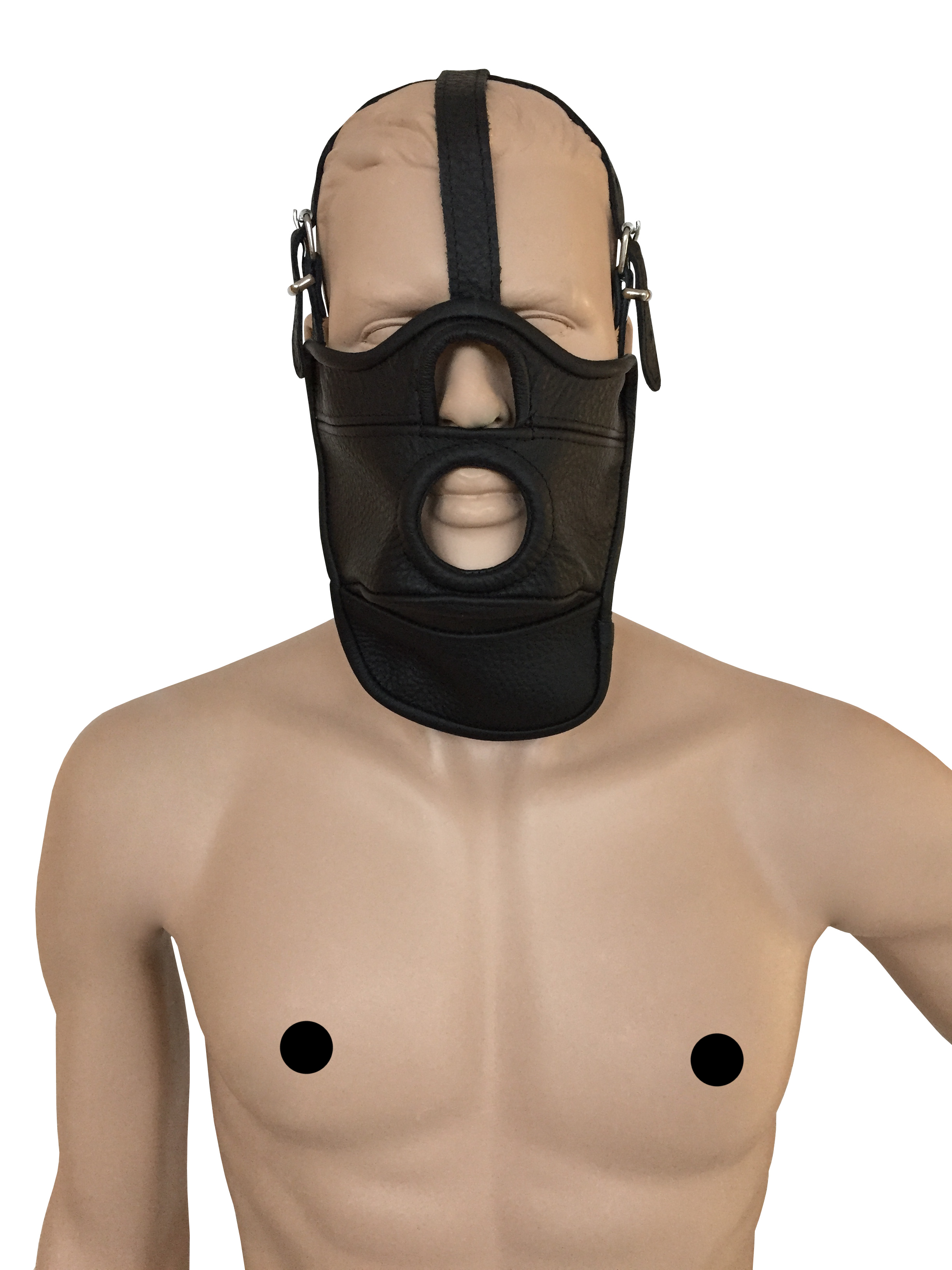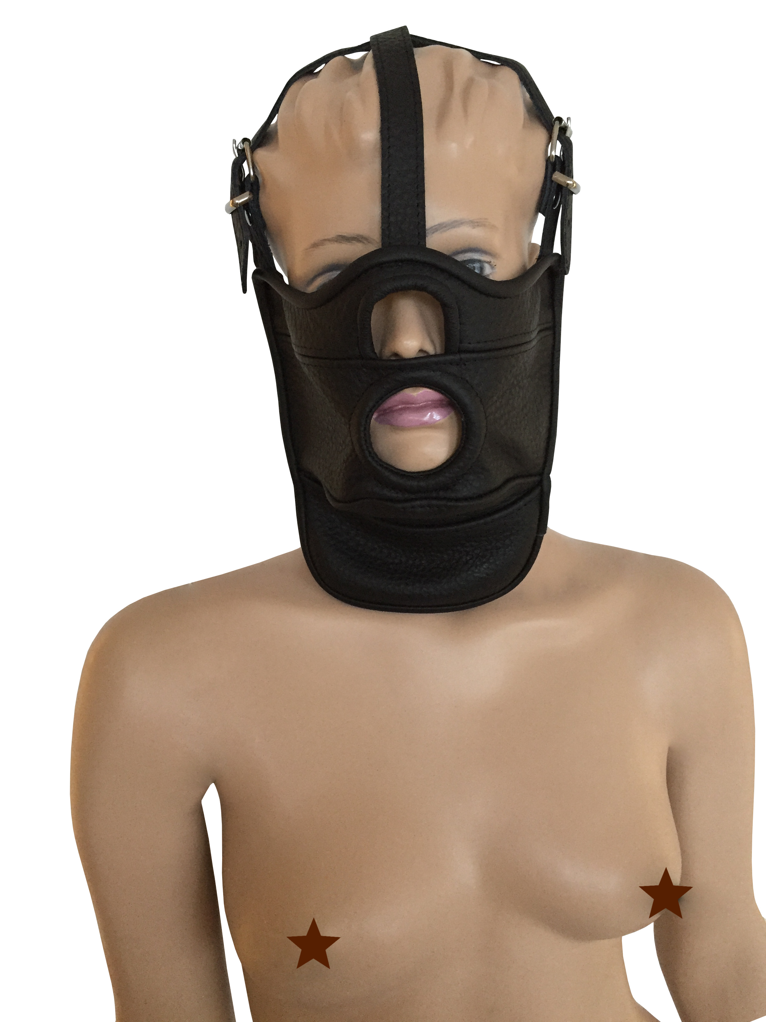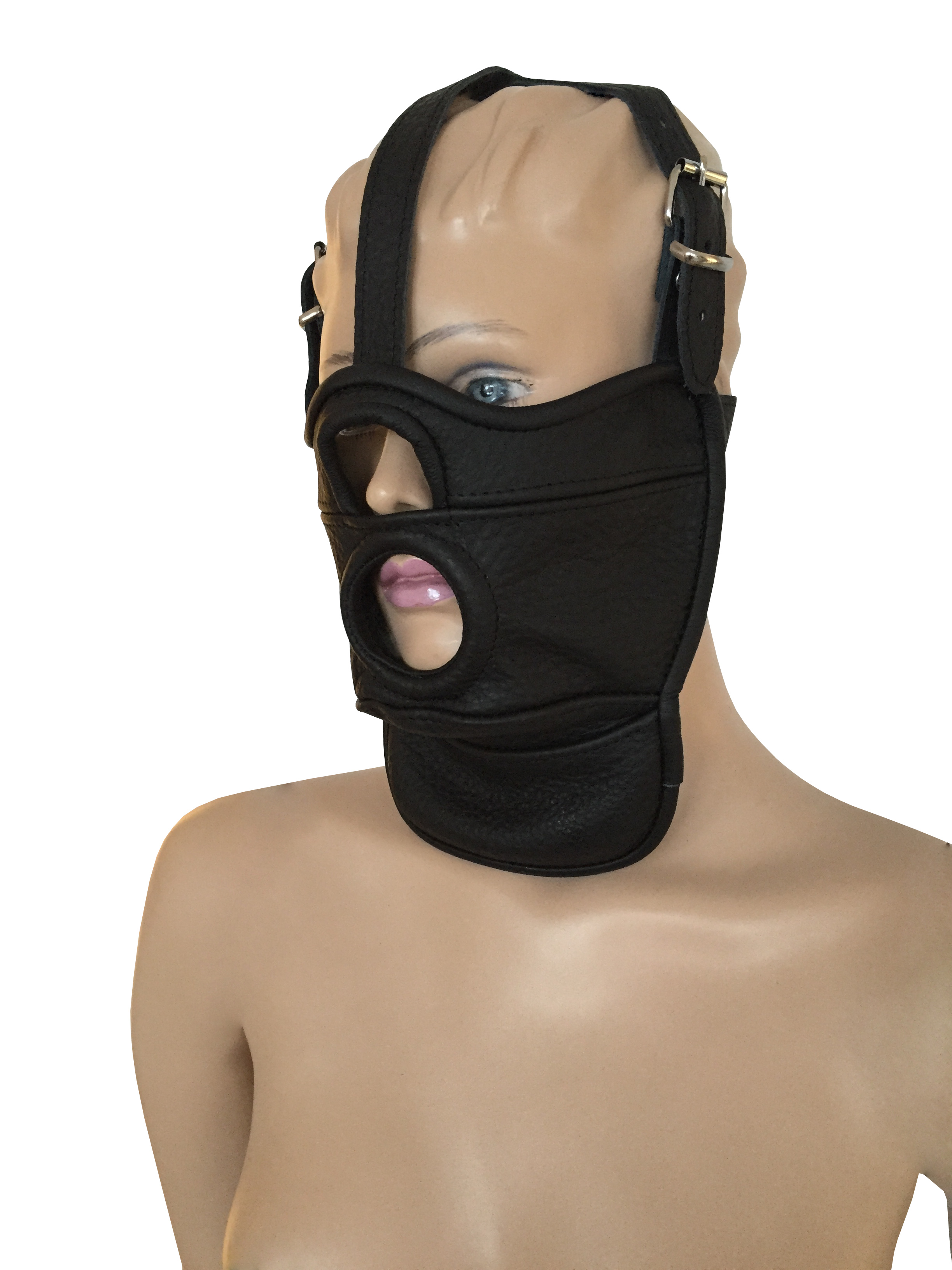 Maske aus weichem Leder mit Mundöffnung.