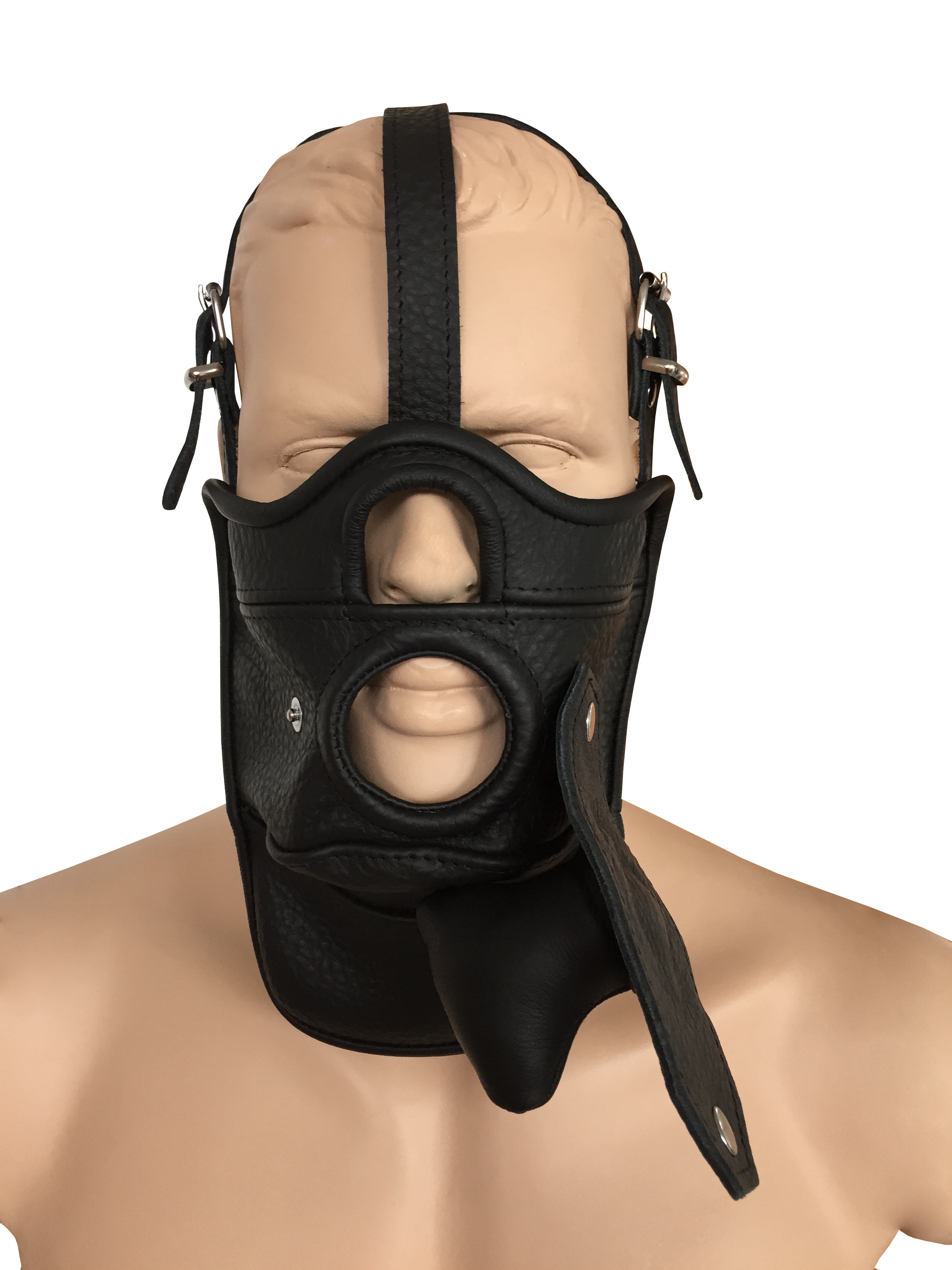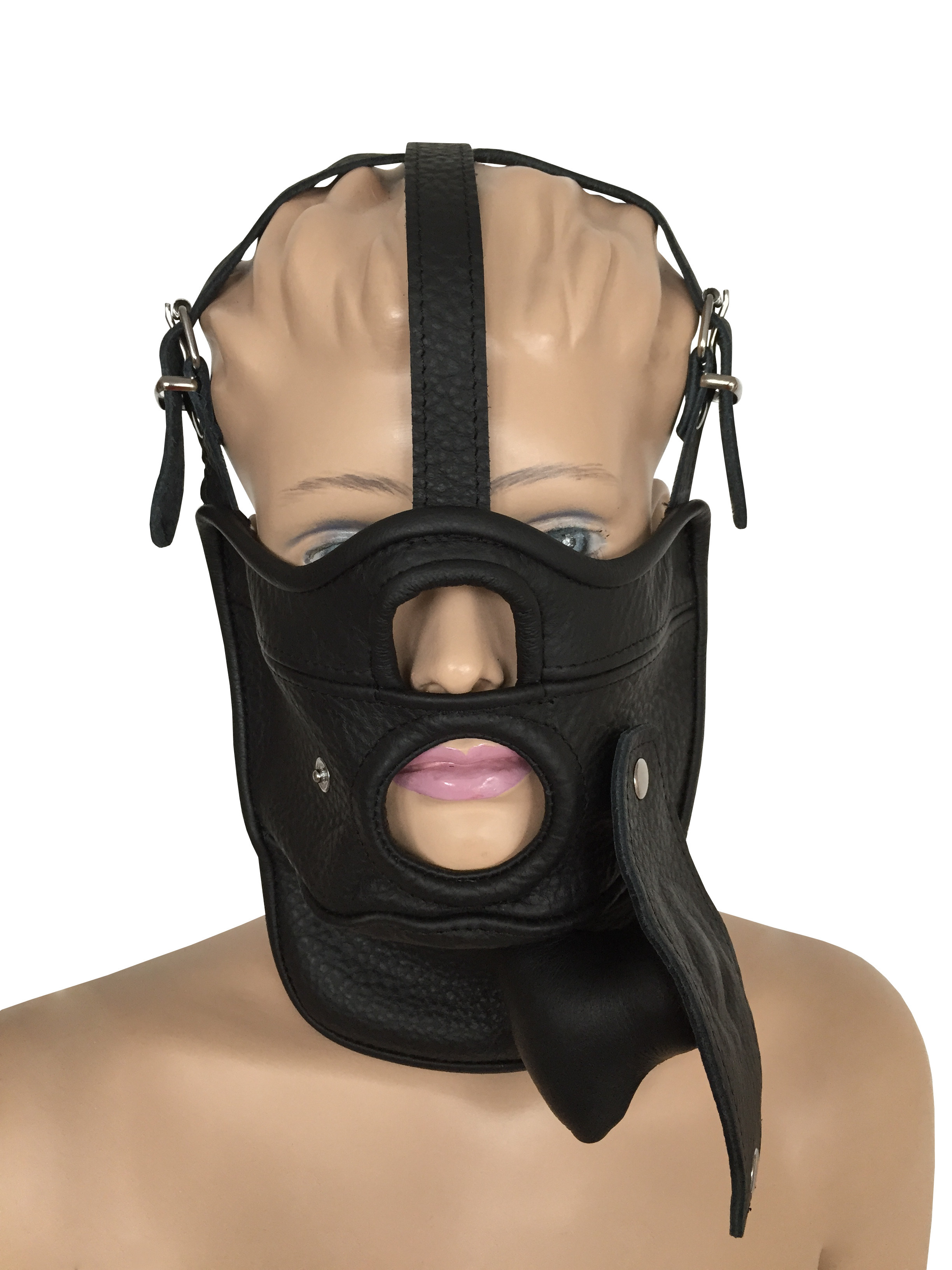 Maske aus weichem Leder mit Mundöffnung.