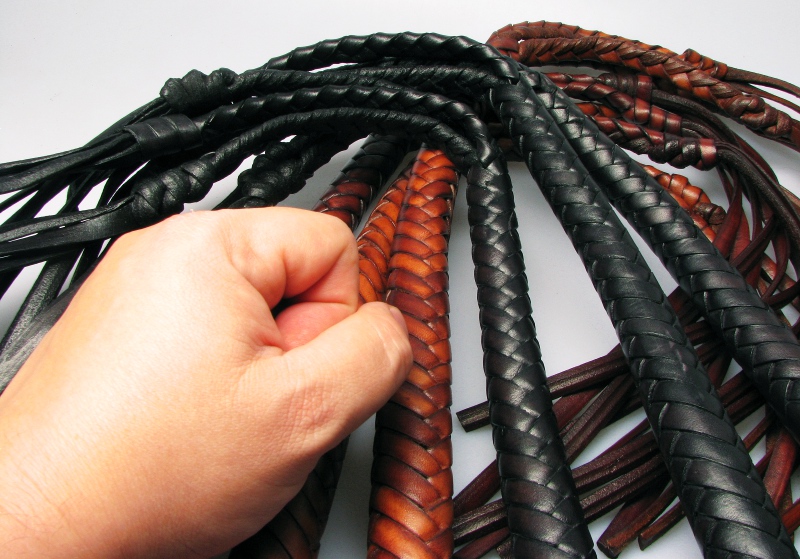 Die Peitsche splittet sich in drei Abschnitten auf - hartes und gemeines Leder!