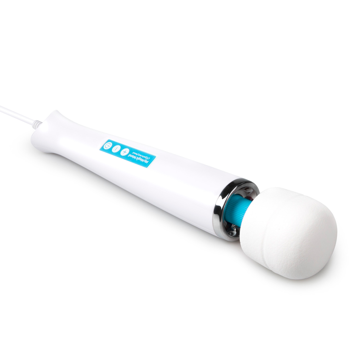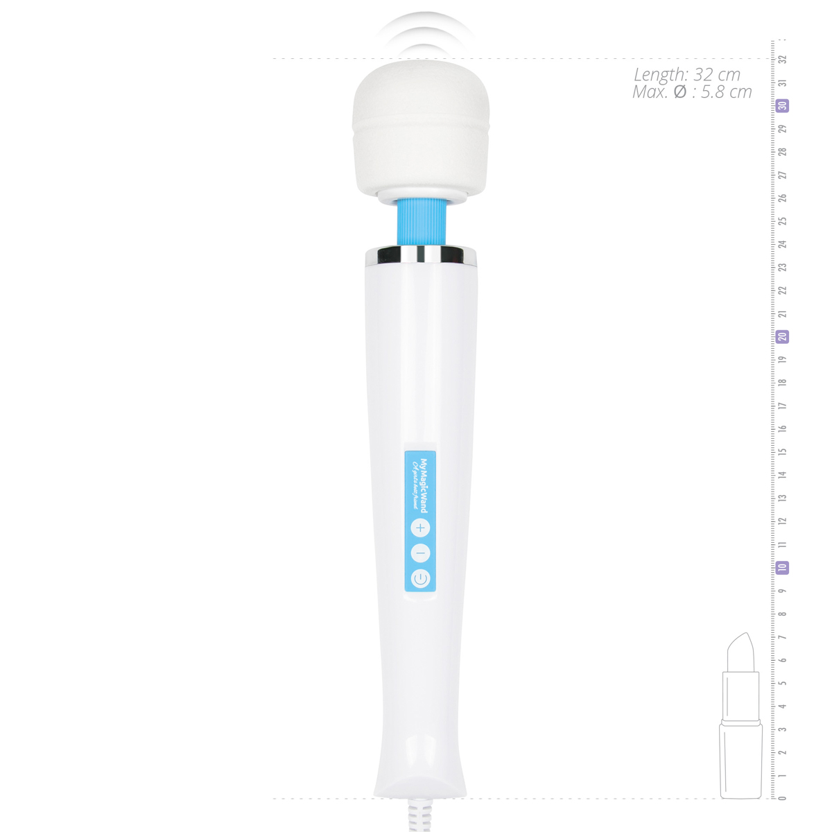 Dieser luxuriöse Wand-Vibrator ist mit einem kräftigen Motor und 6 unterschiedlichen Vibrationsständen ausgestattet. Hier heißt es: Lust auf Knopfdruck! Denn die Vibrationsstände können einfach über die im Griff integrierten Druckknöpfe eingestellt werden. Der runde Griff liegt gut in der Hand und die Druckknöpfe sind in Griffweite. Damit die Stimulation optimal reguliert werden kann. Findest Du tiefe und kräftige Vibrationen angenehm? Oder bringen Dich pulsierende Vibrationen zum Höhepunkt? Kein Problem, denn die abwechslungsreichen Stände können im Handumdrehen eingestellt werden. Das extra lange Kabel bietet nicht nur Freiheit sondern garantiert auch ungekannt kräftige Vibrationen. So hast du auch keine Umstände mit einem leeren Akku, Batterien, die gewechselt werden müssen oder eine Fernbedienung die nicht funktioniert. Stecker in die Steckdose und los geht’s! Zeit spielt keine Rolle, denn mit dem MyMagicWand erlebst Du endloses Vergnügen.