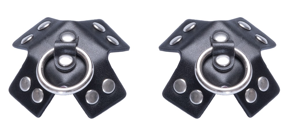 stilvollem Lederimitat mit Nietenbesatz und (Fessel-) Ring. Zum