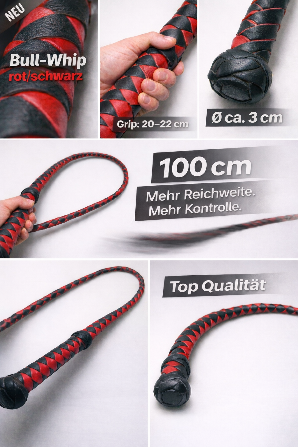 Bullenpeitsche rot/schwarz – mehr Länge, mehr Reichweite, mehr Eindruck.