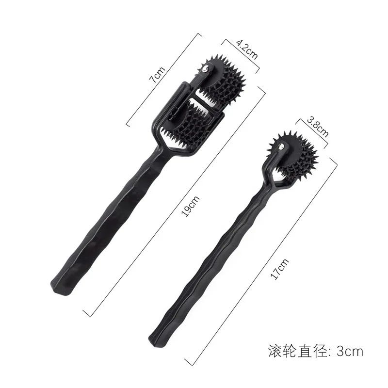 Bei diesem Nadelroller sitzen zwei bzw. ein 5fache Nadelrad am bequemen Griff.