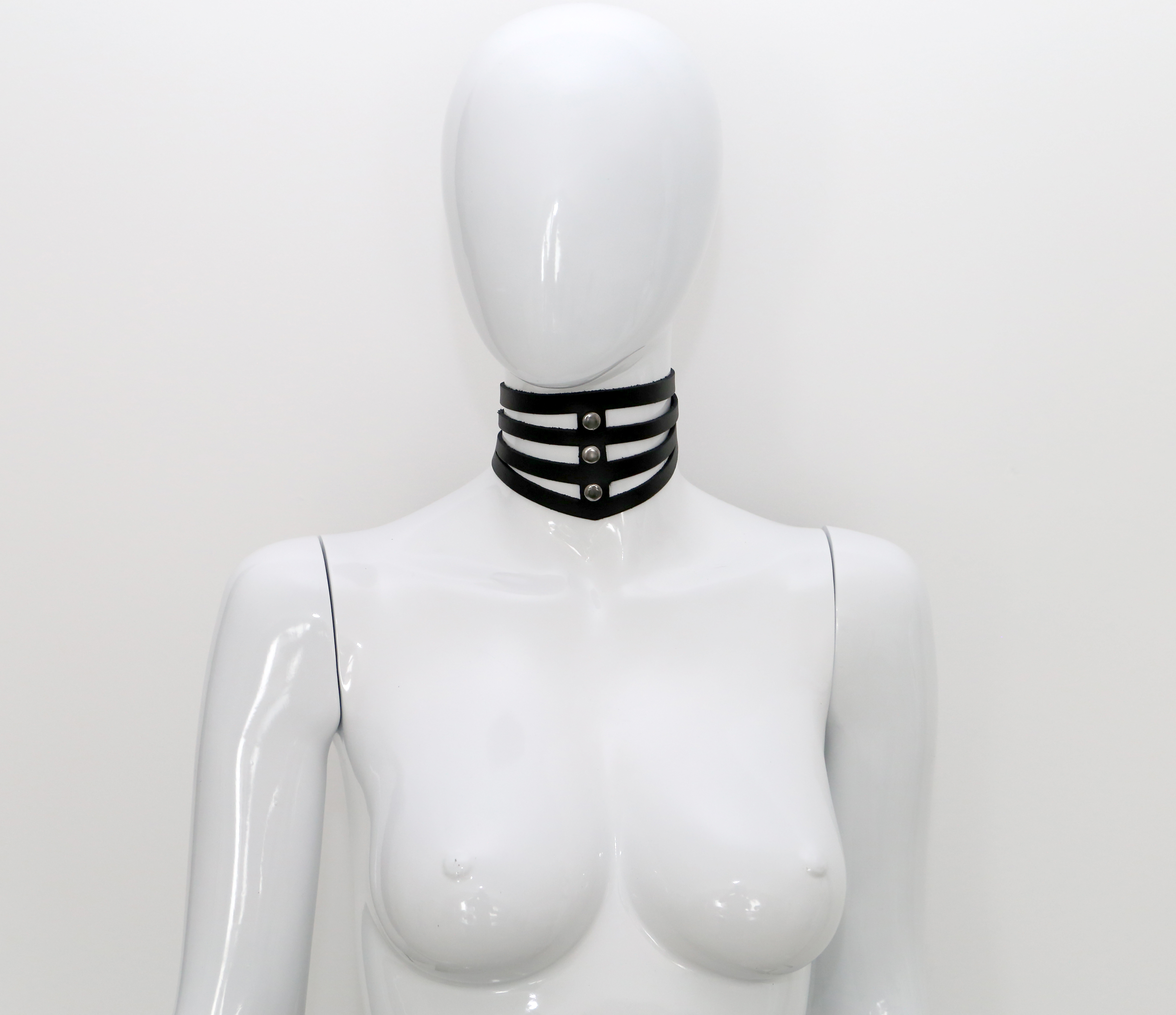 Choker - Halsband der O in Schwarz - echtes Leder mit grossem Ring - Grösse M