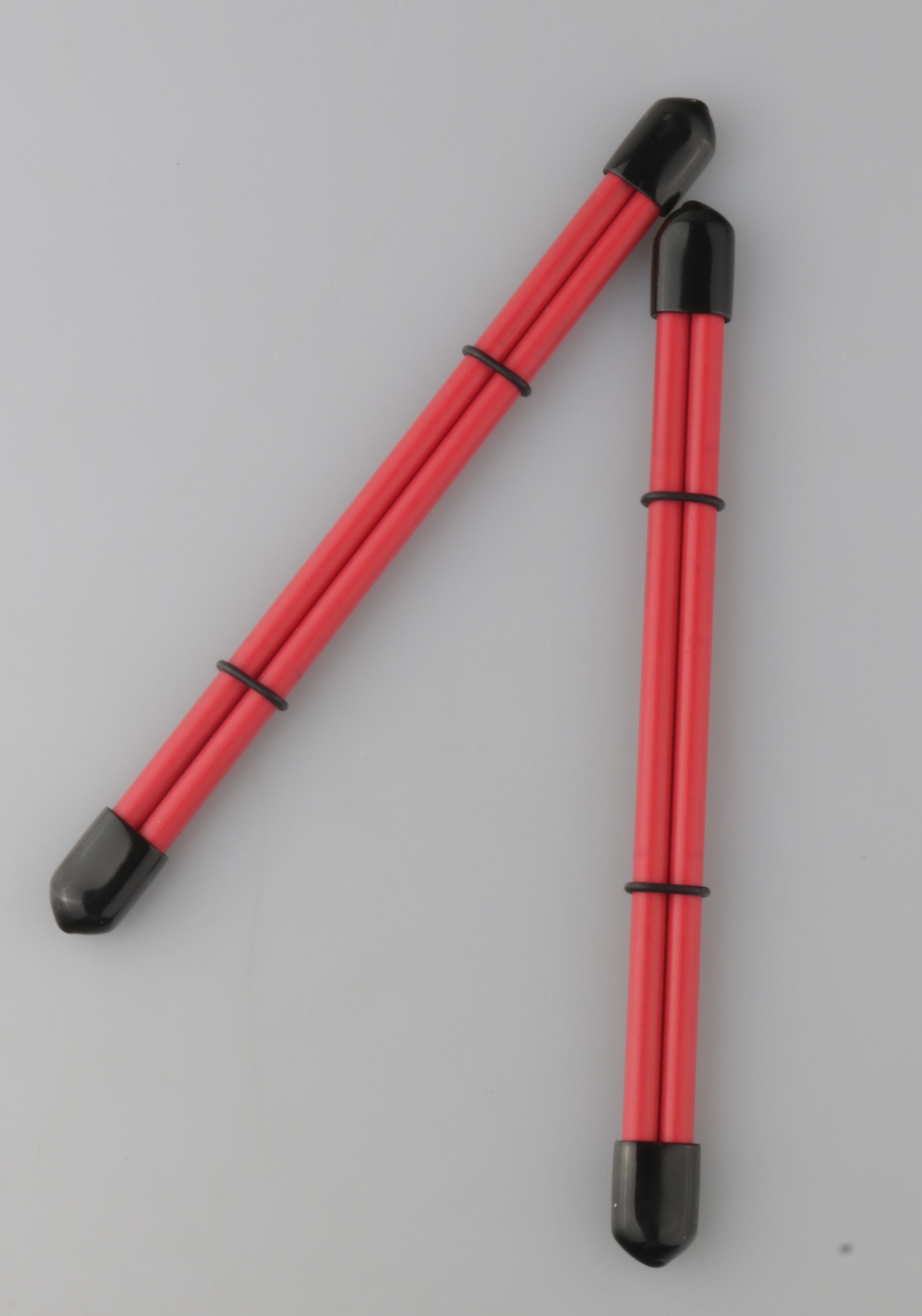 Mit Gummiendkappen und Gummiringen. Mit den Ringen wird die Intenssität reguliert.