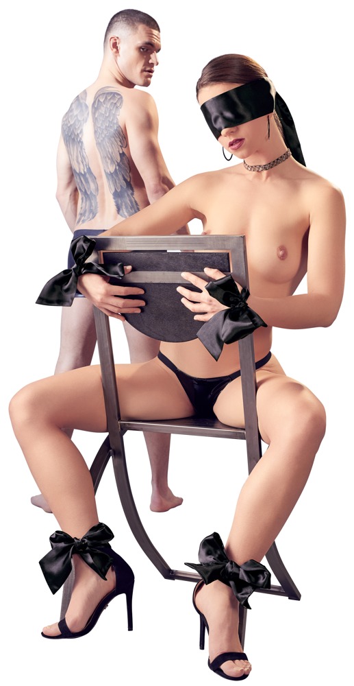 5-teiliges Satinbänder-Set mit 1 längerem Band für den Kopf und 4 kürzeren Bändern zum Fesseln von Händen und Füßen.