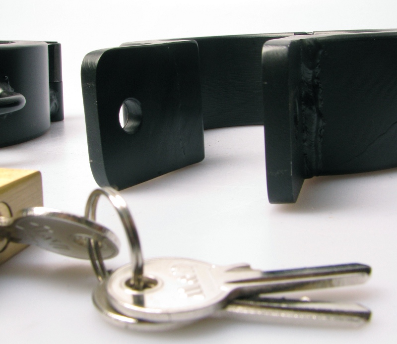 Sie sind aus 15mm dicken Stahl gefertigt, mit einem massiven Scharnier versehen und beeindrucken mit einem Gewicht von ca. 1,8 KG pro Fessel.
